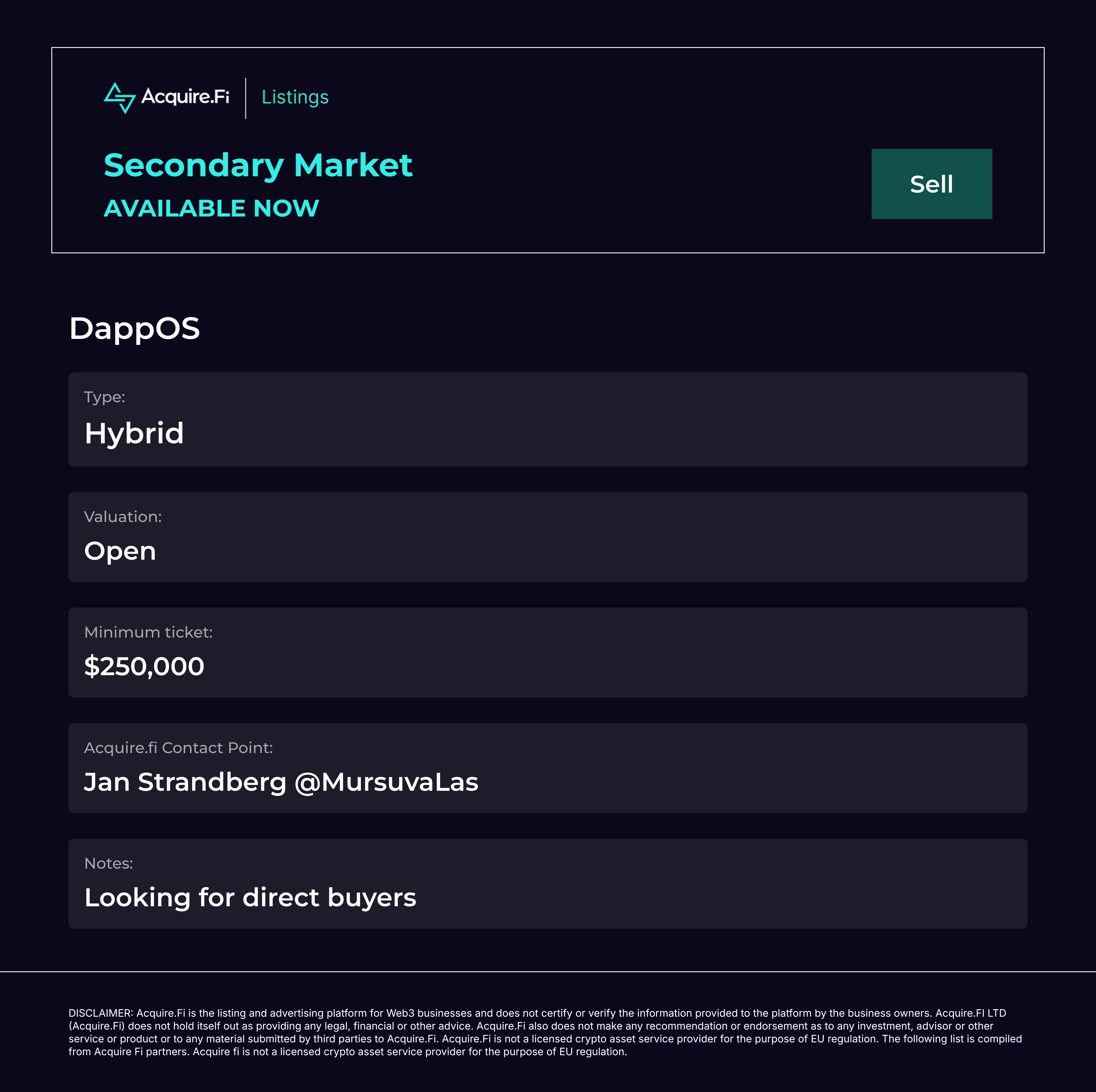 Secondary Market Sell: DappOS.